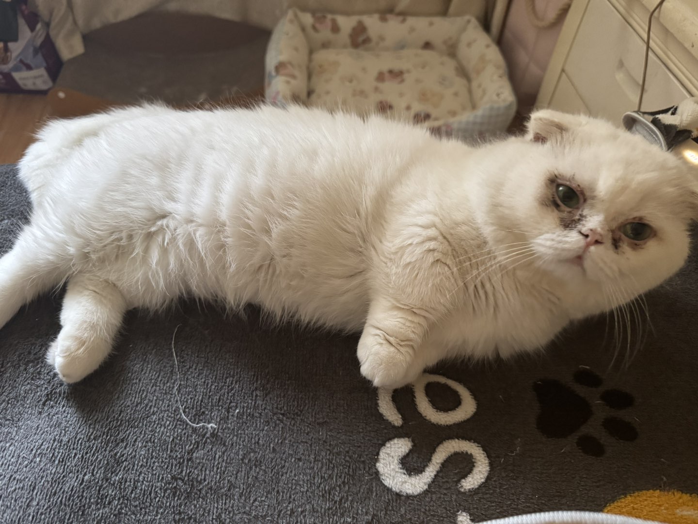 1岁多了疫苗全打 最近一直没有时间 要去外地希望找个好人家 眼睛黑黑的是分泌物 洗个澡就好了 (微偿)送猫砂盆和猫砂 还有猫粮 猫咪窝 猫抓板 和玩偶